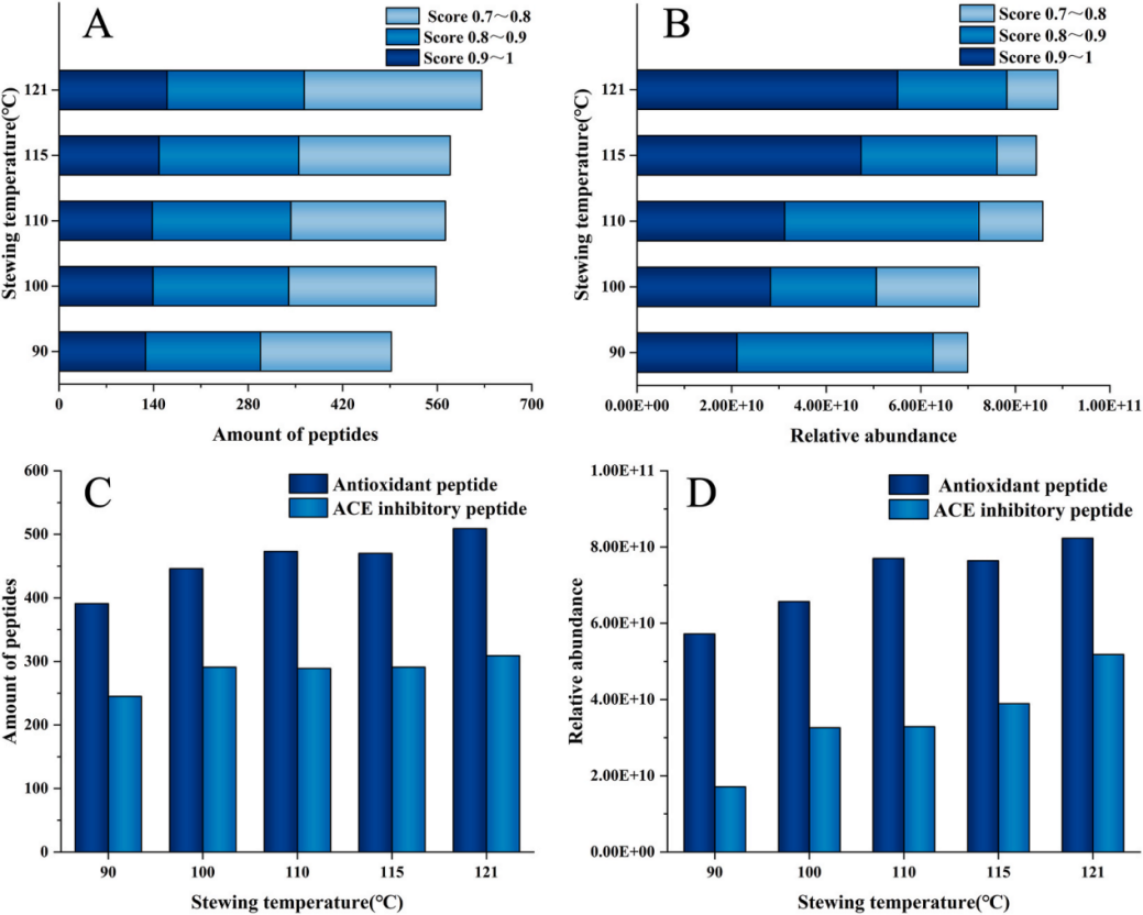 而燕之屋本次與江南大學(xué)合作發(fā)表的權(quán)威SCI論文,則在這一認(rèn)知基礎(chǔ)上實現(xiàn)了更深層次的突破。研究表明,121℃燉煮工藝不僅使燕窩蛋白更易被消化,更在此基礎(chǔ)上促進(jìn)了具有特定生理功能的小分子活性肽的釋放② 。具體實驗數(shù)據(jù)顯示,經(jīng)過121℃燉煮的燕窩,相較于傳統(tǒng)燉煮的燕窩,活性肽的數(shù)量增加了27.2%,含量上升了27.3%,同時,其ACE(血管緊張素轉(zhuǎn)化酶)抑制活性提升了28.6%② 。ACE抑制活性是現(xiàn)代健康科學(xué)中公認(rèn)的一項重要生物功能,代表著有助于維持健康血壓水平、保護(hù)心血管系統(tǒng)健康的潛力② 。這項研究結(jié)果通過量化數(shù)據(jù)揭示了,科學(xué)的燉煮工藝能夠增加燕窩中特定活性物質(zhì)的含量,同時增強(qiáng)燕窩在特定健康領(lǐng)域的生物活性潛力。