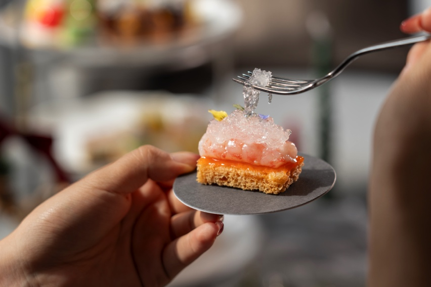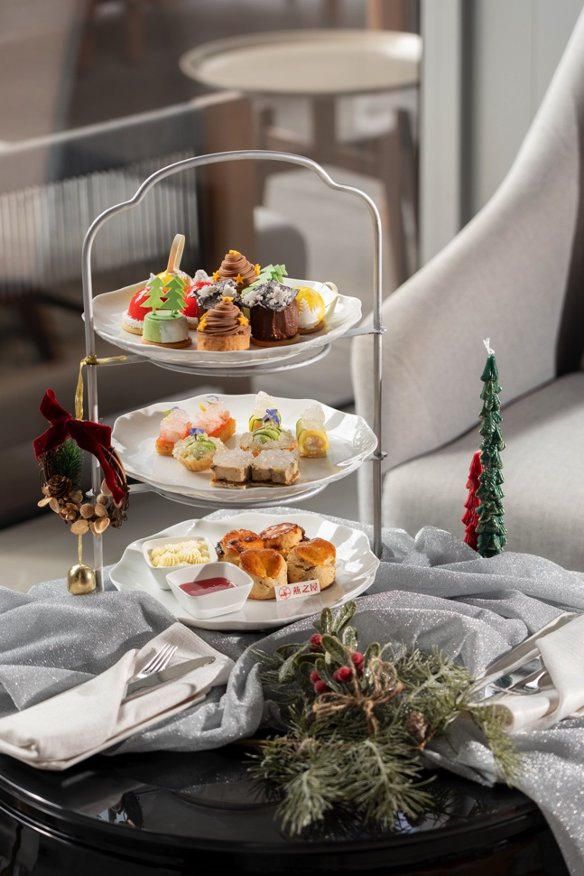 本次聯(lián)名下午茶精選燕之屋印尼核心產(chǎn)區(qū)燕窩,由廣州保利洲際酒店廚師團隊創(chuàng)意烹制,呈現(xiàn)一系列兼具視覺美感與味覺層次的燕窩雅點。燕窩鵝肝批配無花果醬,鵝脂豐潤與燕窩清雅相映成趣,無花果醬帶來甘美回韻;蟹肉龍蝦燕窩卷,海洋珍饈裹藏絲縷燕窩,鮮美與溫潤完美交融,共譜新章;燕窩甜蝦配薄脆,鮮嫩甜蝦邂逅彈潤燕窩,再搭配金黃薄脆,演繹出剛?cè)岵奈队X哲學;牛油果燕窩球配青蘋果啫喱,口感層次豐厚,宛若自然韻律。四道匠心之作,譜寫咸點風雅,搭配圣誕栗子撻、圣誕草莓奶酪小點等甜品系列,營造甜蜜浪漫氛圍,勾勒節(jié)日詩篇。